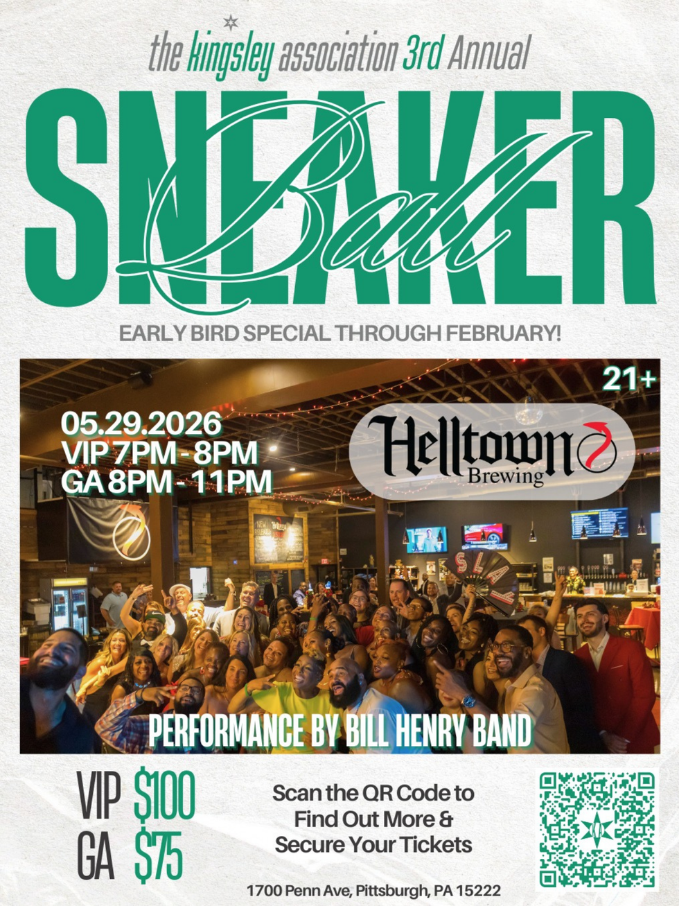 Save the Date: Our 2026 Kingsley Sneaker Ball takes place on May 29, 2026 at Helltown Brewing in the Strip District, with early bird ticket sales happening now through February 28.